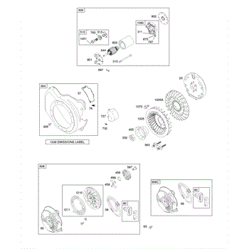 Parts for Briggs & Stratton 128332-0036-E1: Blower Housing, Electric Starter, Flywheel, Rewind Starter Parts