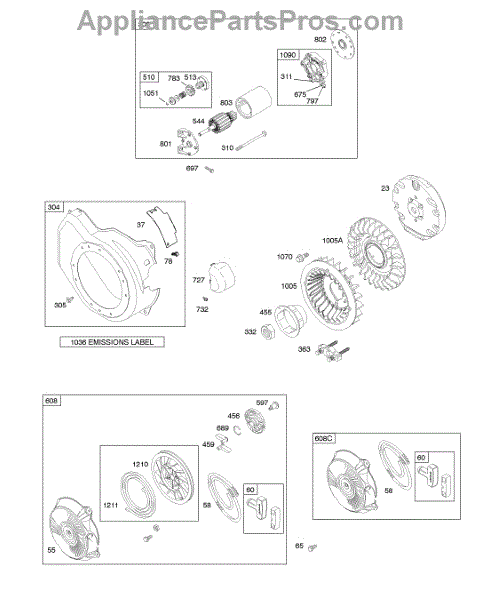 Parts for Briggs & Stratton 128337-0050-E1: Blower Housing, Electric Starter, Flywheel, Rewind Starter Parts