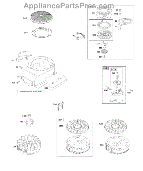 Parts for Briggs & Stratton 128M07-5426-B1: Blower Housing, Electric Starter, Flywheel, Rewind Starter Parts