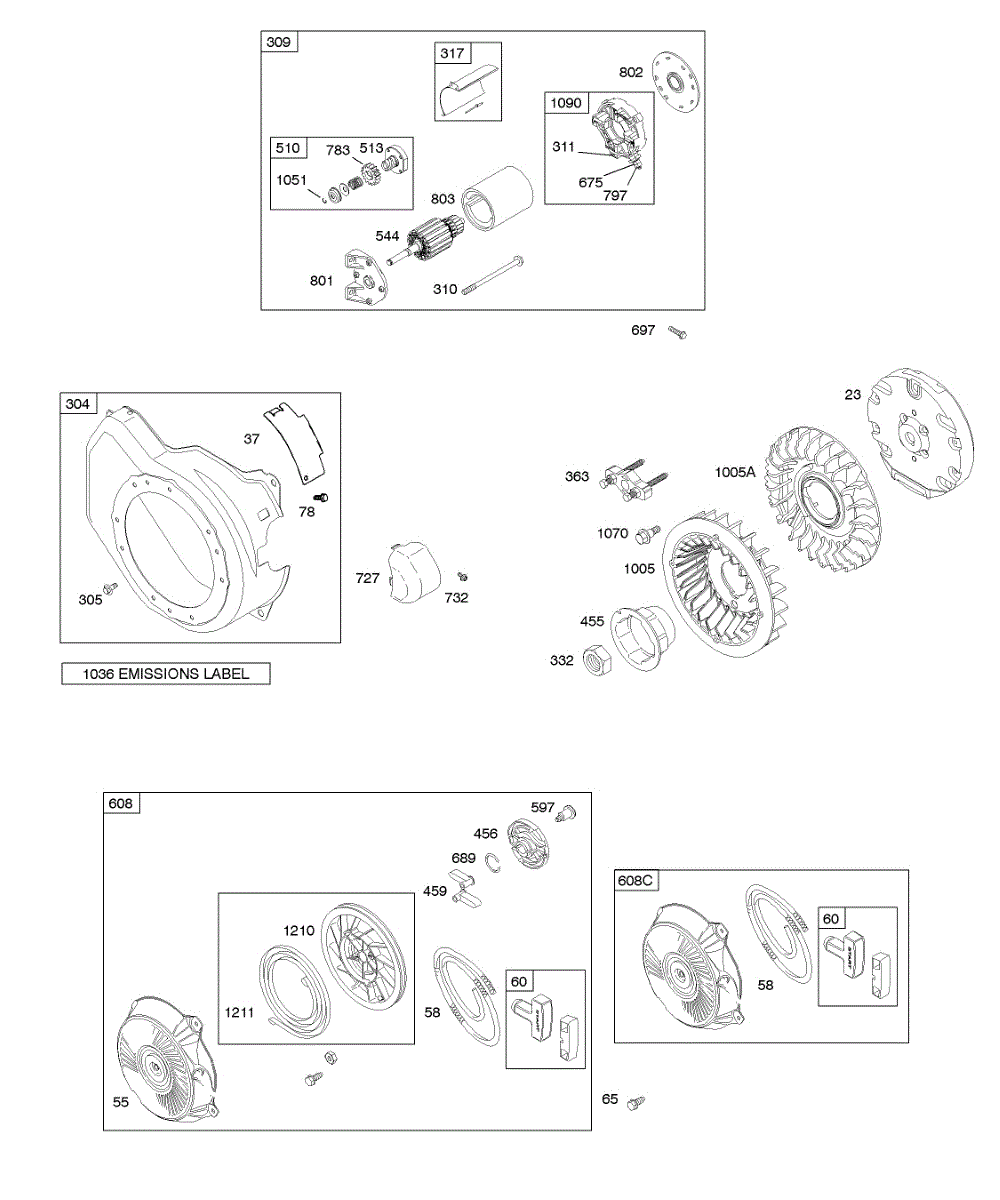 Parts for Briggs & Stratton 12H337-0110-B8: Blower Housing, Electric Starter, Flywheel, Rewind Starter Parts
