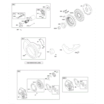 Parts for Briggs & Stratton 150112-0114-E9: Blower Housing, Electric Starter, Flywheel, Rewind Starter Parts