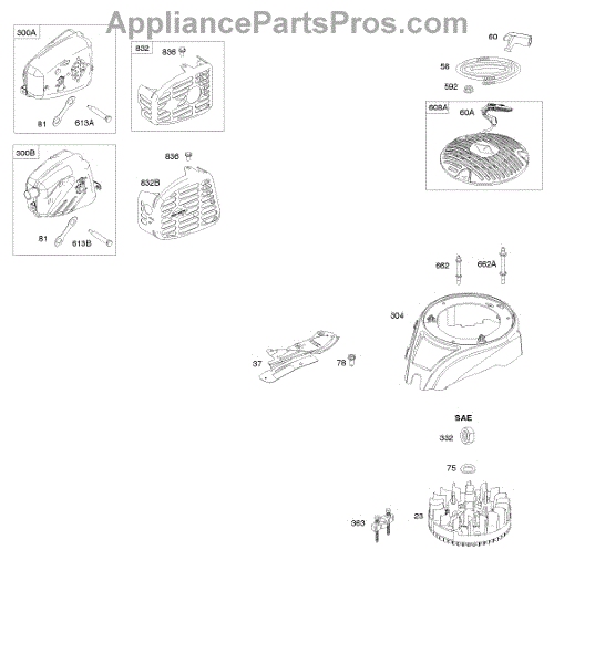 Parts for Briggs & Stratton 090602-0112-B8: Blower Housing, Exhaust System, Flywheel, Rewind Starter Parts