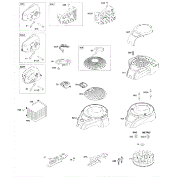 Parts for Briggs & Stratton 100602-0177-H8: Blower Housing, Exhaust System, Flywheel, Rewind Starter Parts