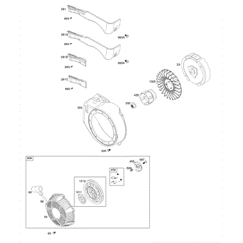 Parts for Briggs & Stratton 083152-1141-H1: Blower Housing, Flywheel, Rewind Starter Parts