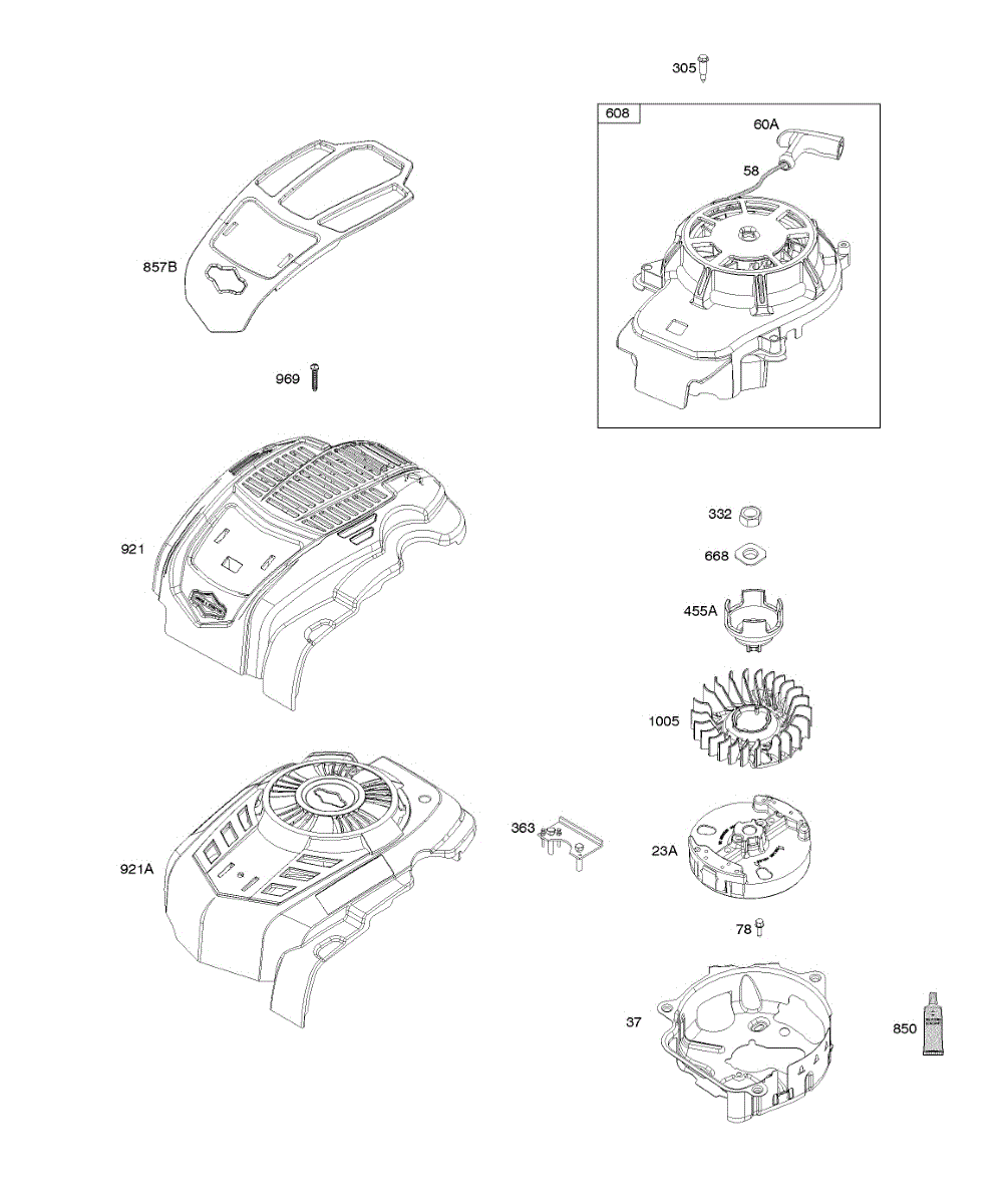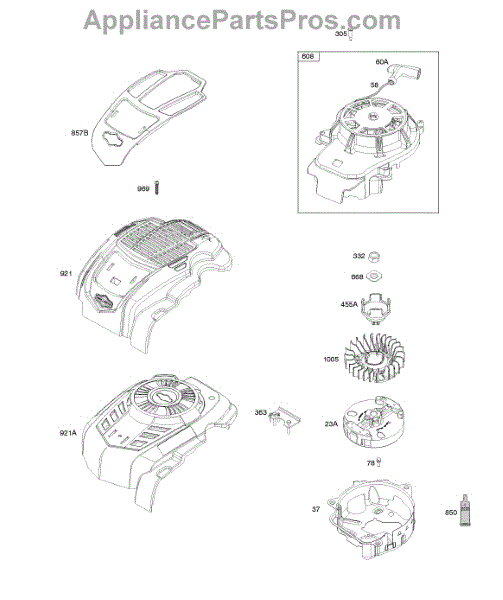 Parts for Briggs & Stratton 104M02-0017-H1: Blower Housing, Flywheel, Rewind Starter Parts