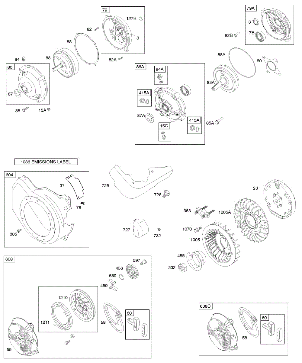 Parts for Briggs & Stratton 120312-0414-B1: Blower Housing, Flywheel, Gear Reduction, Rewind Starter Parts