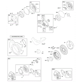 Parts for Briggs & Stratton 120332-0036-E1: Blower Housing, Flywheel, Gear Reduction, Rewind Starter Parts