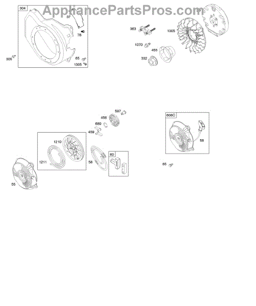 This starter rewind, also called a pull start, rope start, or recoil starter, is a genuine OEM part made by Midwest Engine. A starter rewind is a component of an internal combustion engine on an appliance used to start and set the engine in motion. This starter rewind replacement part works with engines, chipper shredders, lawn mowers, leaf blowers, and tillers. With extended long-term use, starter rewinds can be subject to damage, malfunction, and disrepair. This damage can only grow worse with further usage, so it is recommended that the problem be addressed when a starter rewind either grows detached, becomes frayed, or breaks entirely. It will be obvious if a starter rewind is not working, as the engine will not start. This could manifest visually in issues with the pull cord not catching or the engine simply stalling or giving out entirely. This will require, at a bare minimum, a replacement starter rewind. Always wear gloves when handling, repairing, and operating outdoor equipment.This starter rewind works with the brands Briggs and Stratton, Cub Cadet, Toro, and Simplicity. Part sold individually, and any additional hardware needed will have to be purchased separately.