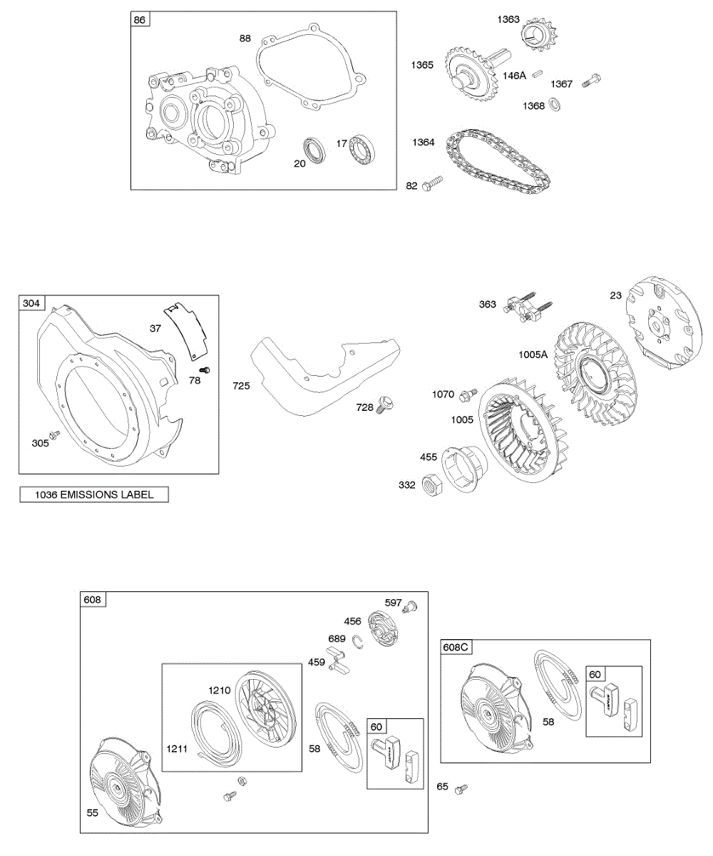 Parts for Briggs & Stratton 122232-0120-01: Blower Housing, Flywheel, Gear Reduction, Rewind Starter Parts
