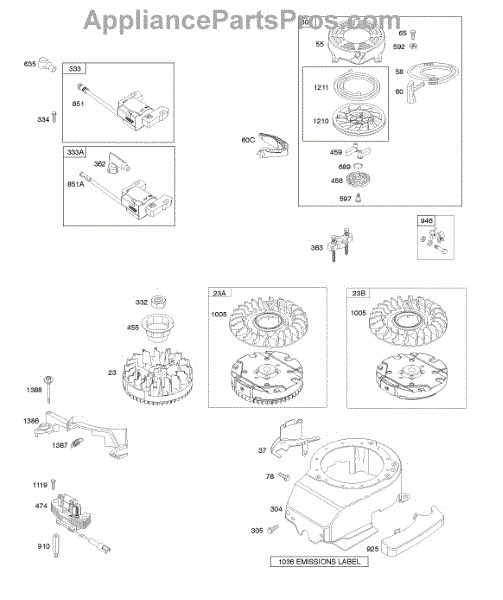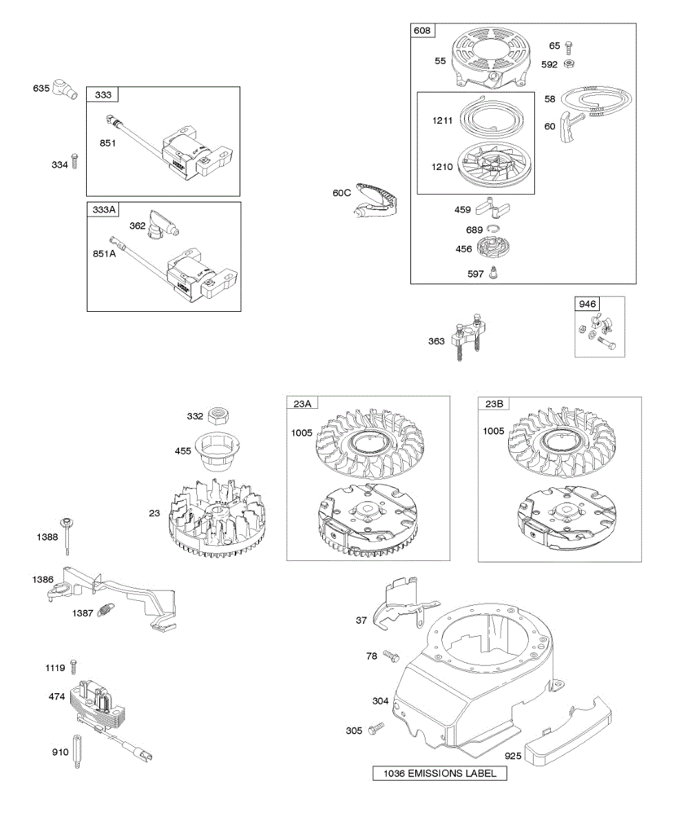 Parts for Briggs & Stratton 126M02-1014-F2: Blower Housing, Flywheel, Ignition, Rewind Starter Parts