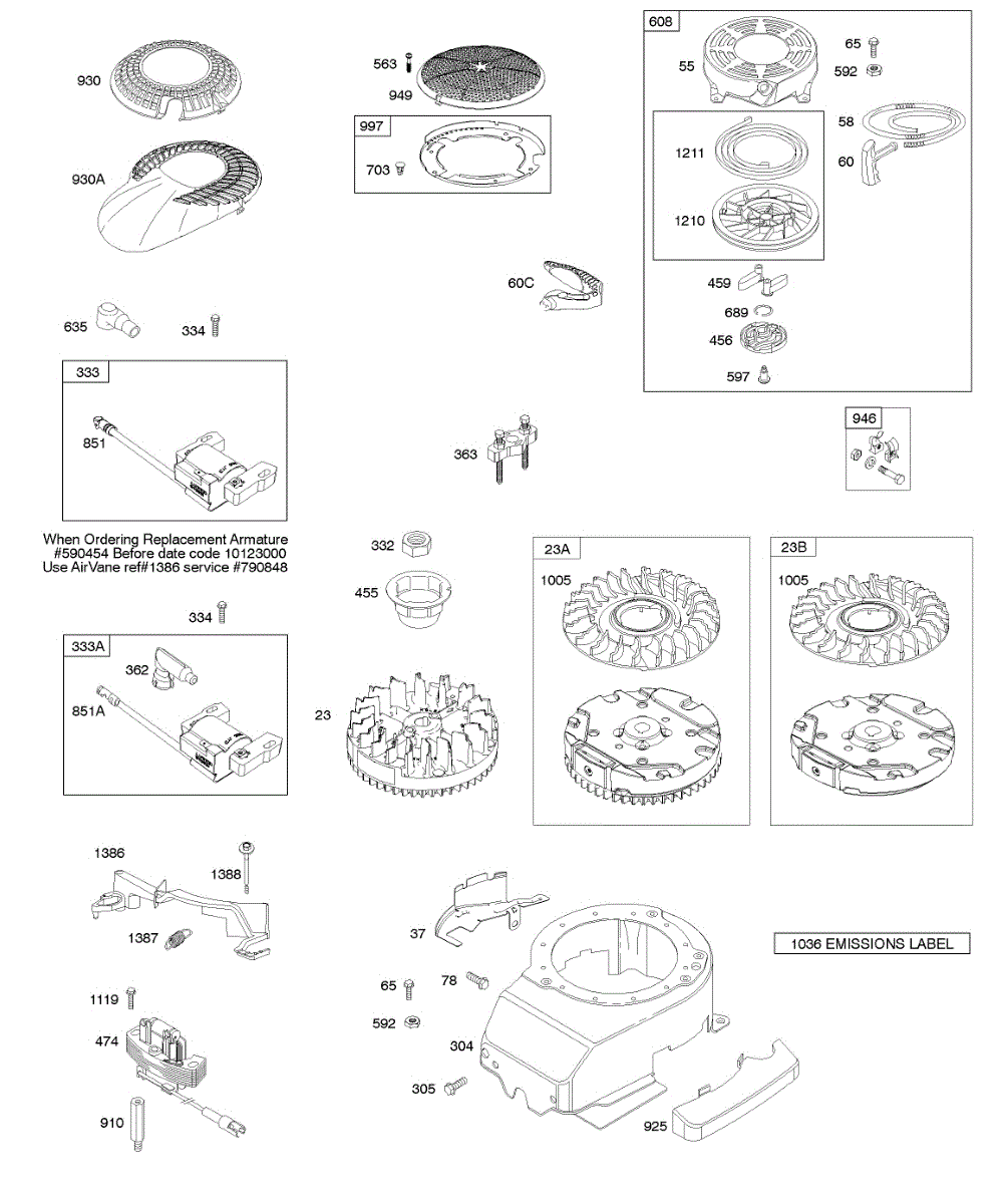 Parts for Briggs & Stratton 126T05-0222-B1: Blower Housing, Flywheel, Rewind Starter Parts