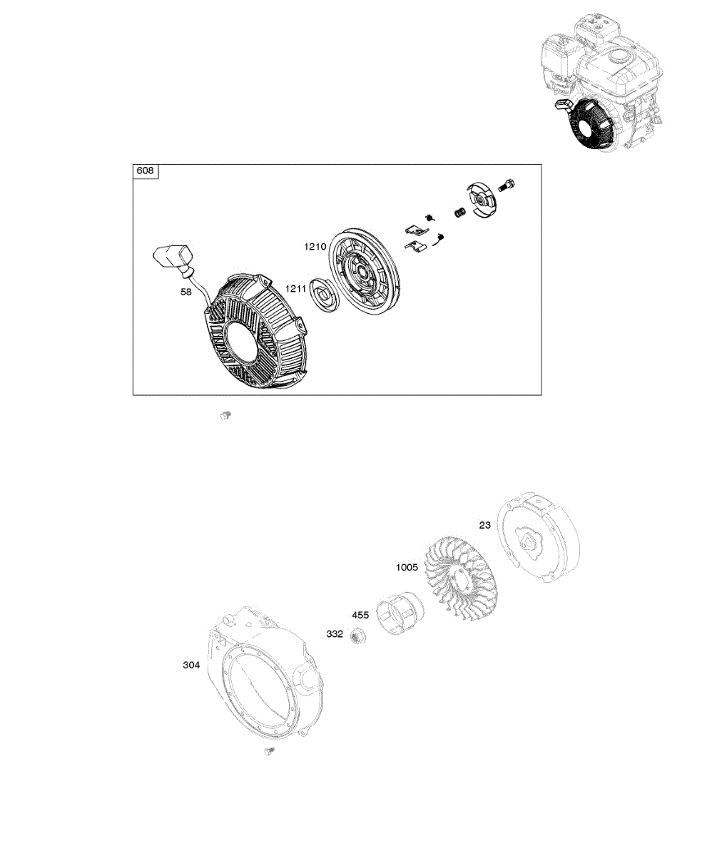 Parts for Briggs & Stratton 13U232-0002-01: Blower Housing, Flywheel, Rewind Starter Parts