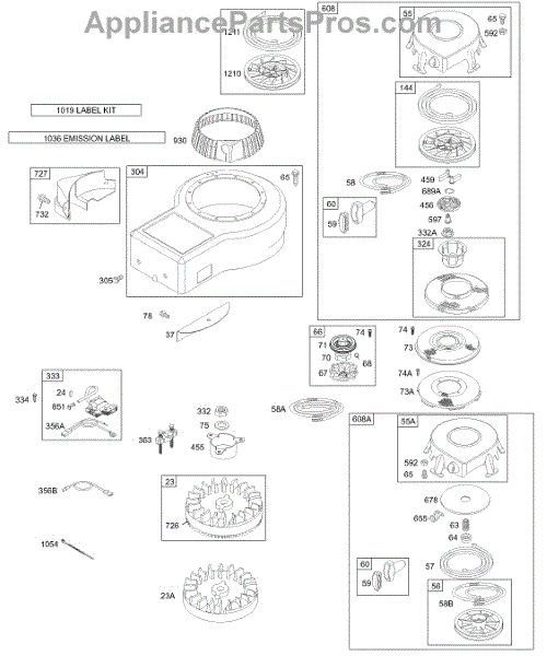 Parts for Briggs & Stratton 197702-0015-E1: Blower Housing, Flywheel, Armature, Rewind Parts