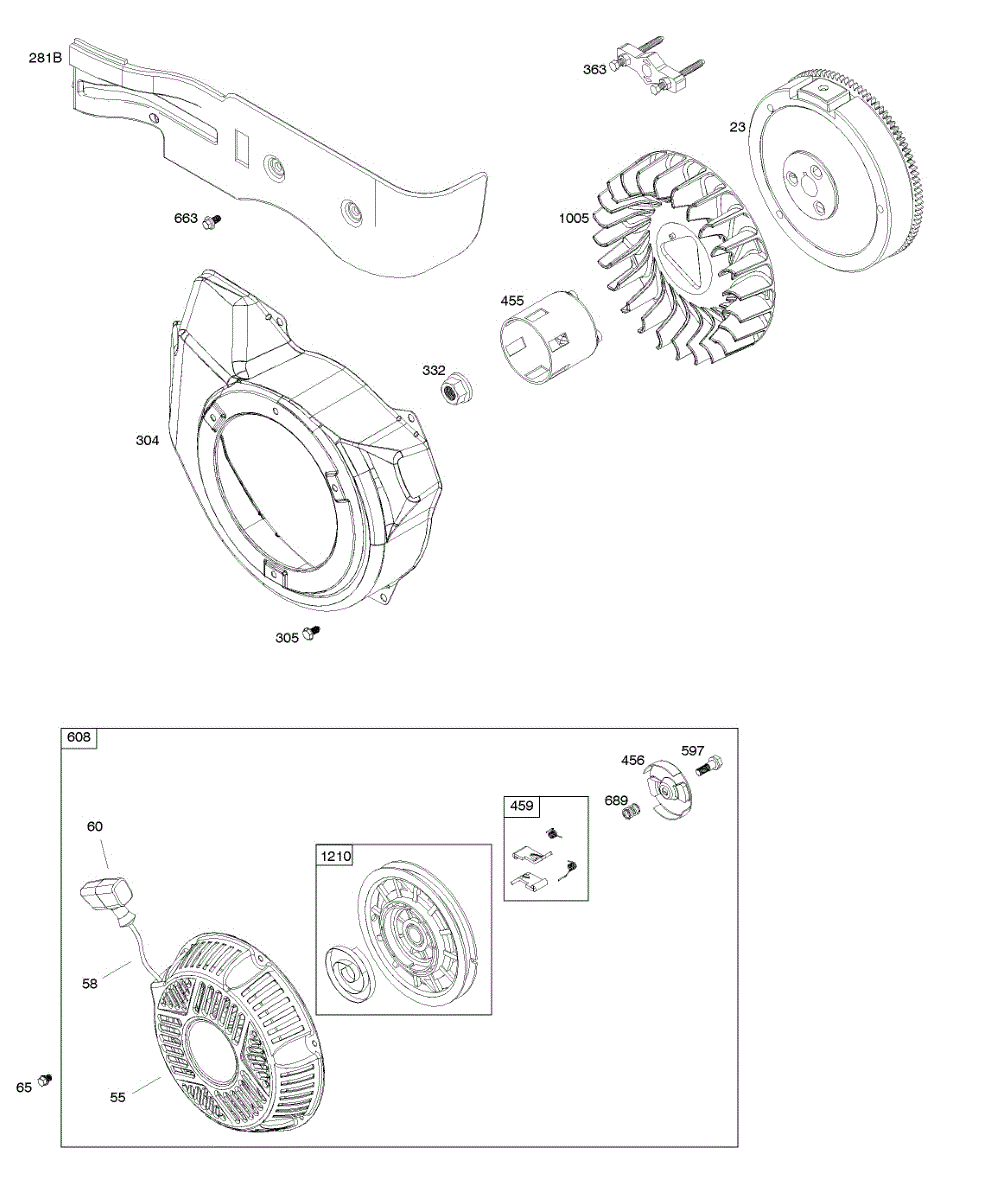 Parts for Briggs & Stratton 19N137-0050-01: Blower Housing, Flywheel, Rewind Starter Parts