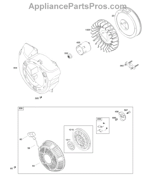Parts for Briggs & Stratton 250035-0110-B1: Blower Housing, Flywheel, Rewind Starter Parts