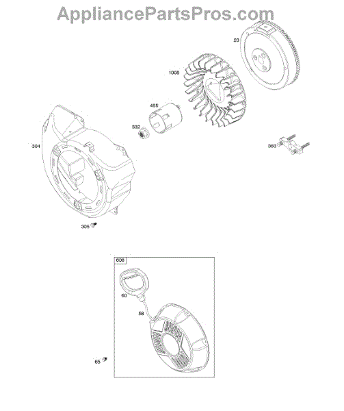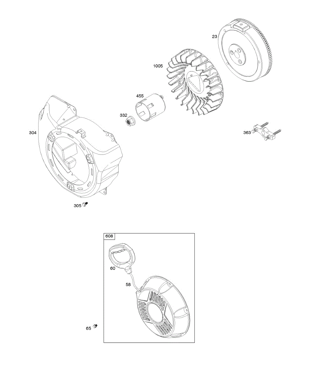 Parts for Briggs & Stratton 25D137-0001-H1: Blower Housing, Flywheel, Rewind Starter Parts