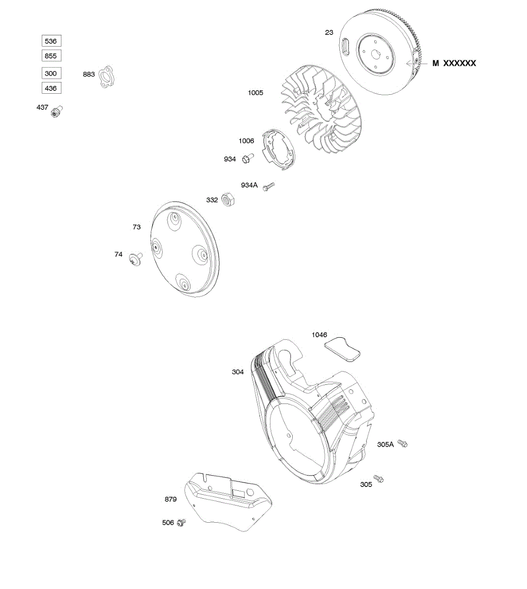 Parts for Briggs & Stratton 355447-0118-01: Blower Housing, Flywheel, Rotating Screen Parts