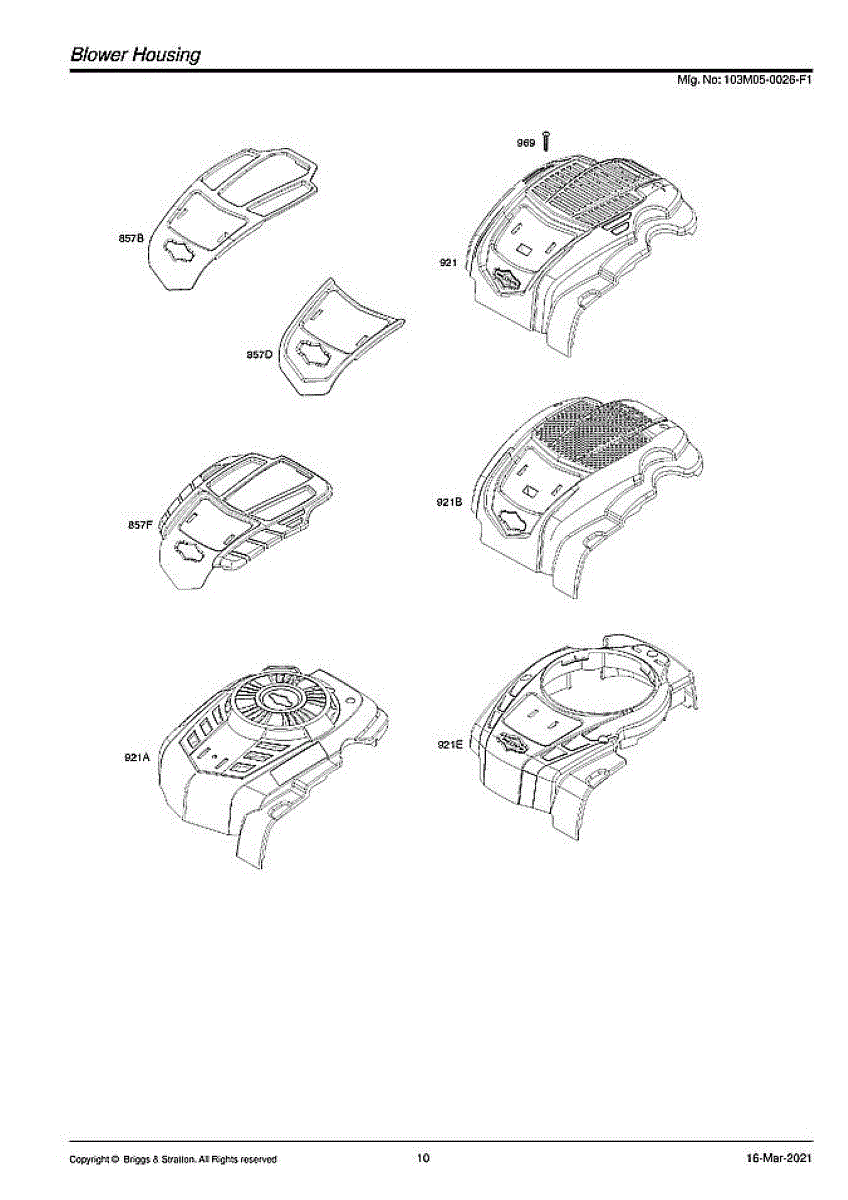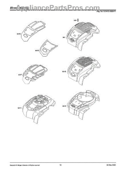 Parts for Briggs & Stratton 103M05-0026-F1: Blower Housing Parts