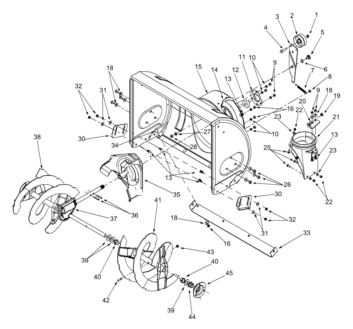 Auger housing assembly for 28-inch snow blowers. Covers and protects the auger mechanism. Replace if housing is cracked, damaged, or rusted through.