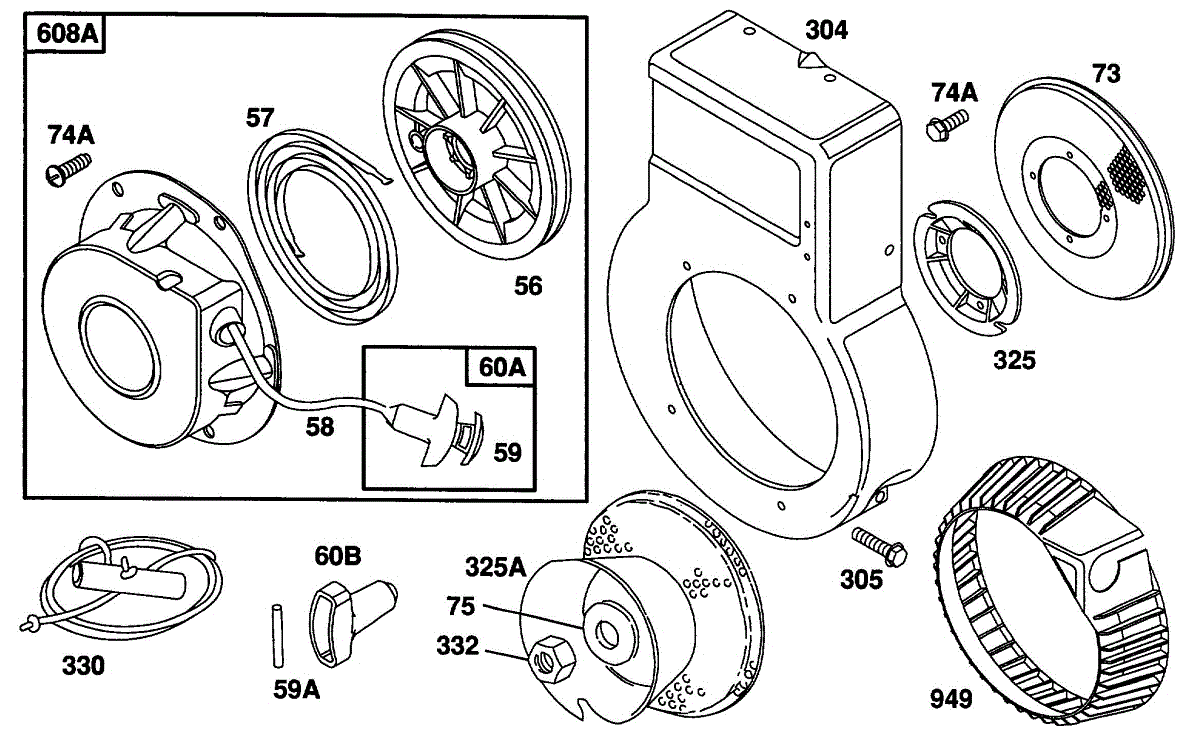 Parts for Briggs & Stratton 082232-4035-04: Blower Housing, Rewind Assy. Parts