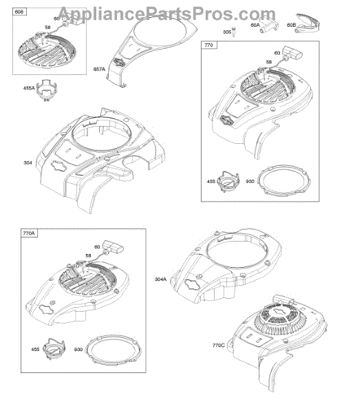 Parts for Briggs & Stratton 08P502-0057-H1: Blower Housing, Rewind Starter Parts