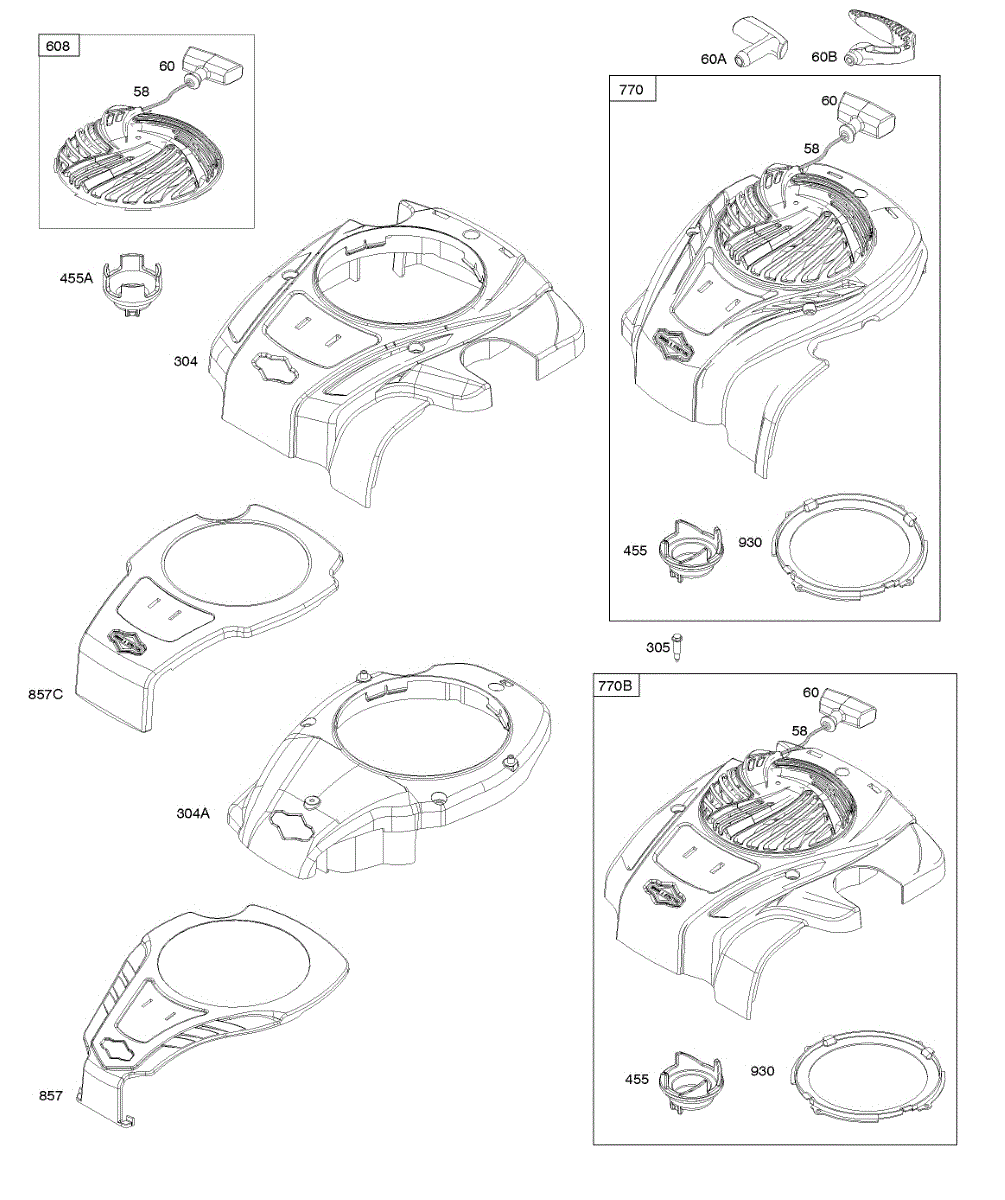 Parts for Briggs & Stratton 093J02-0027-H1: Blower Housing, Rewind Starter Parts