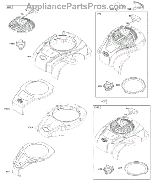 Parts for Briggs & Stratton 093J02-0054-H1: Blower Housing, Rewind Starter Parts