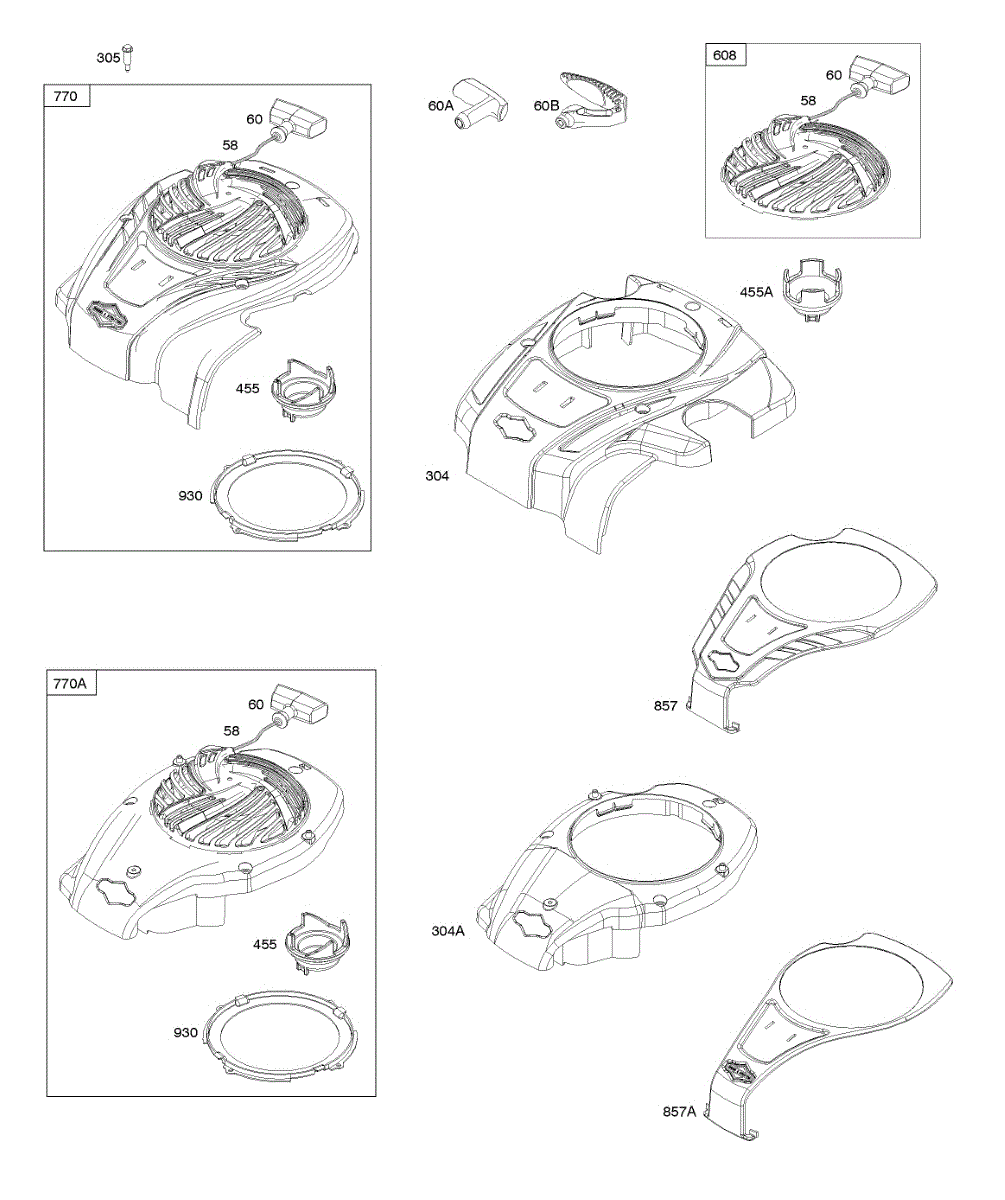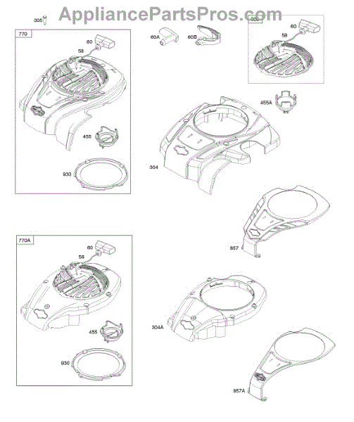 Parts for Briggs & Stratton 09P602-0055-H1: Blower Housing, Rewind Starter Parts