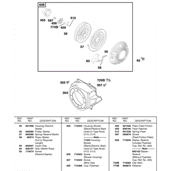 Parts for Briggs & Stratton 187432-0114-E1: Blower Housing, Rewind Starter Parts
