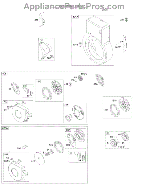 Parts for Briggs & Stratton 19F432-1101-E1: Blower Housing, Rewind Starter Parts