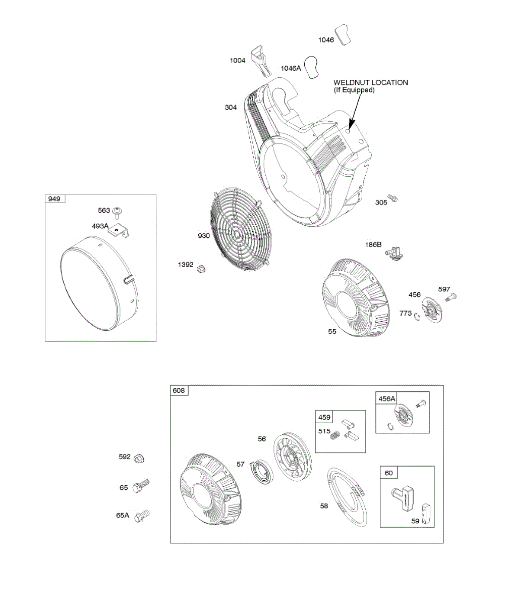 Parts for Briggs & Stratton 305447-0181-G1: Blower Housing, Rewind Starter Parts