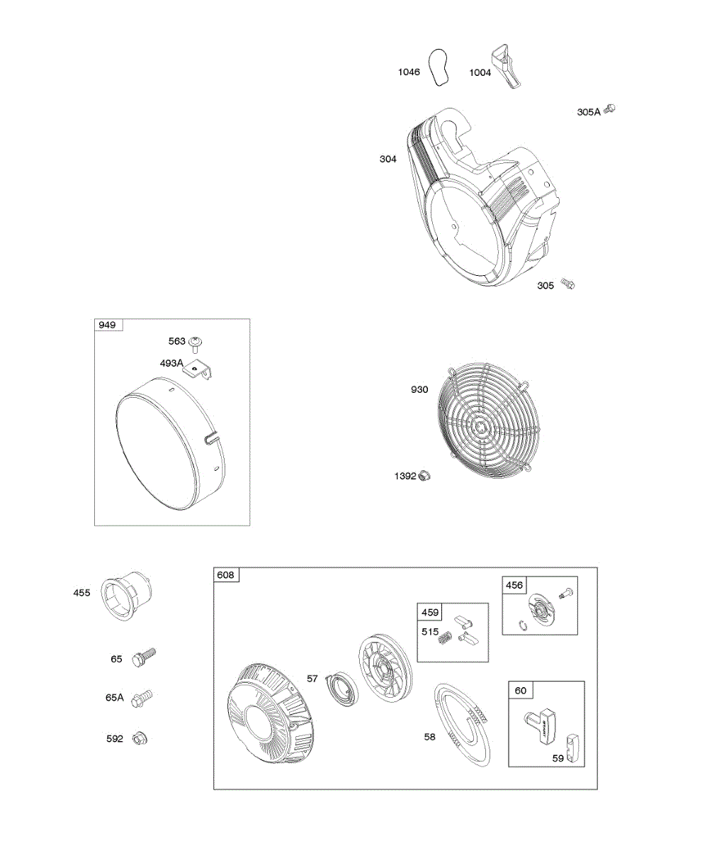 Parts for Briggs & Stratton 356447-0305-G1: Blower Housing, Rewind Starter Parts