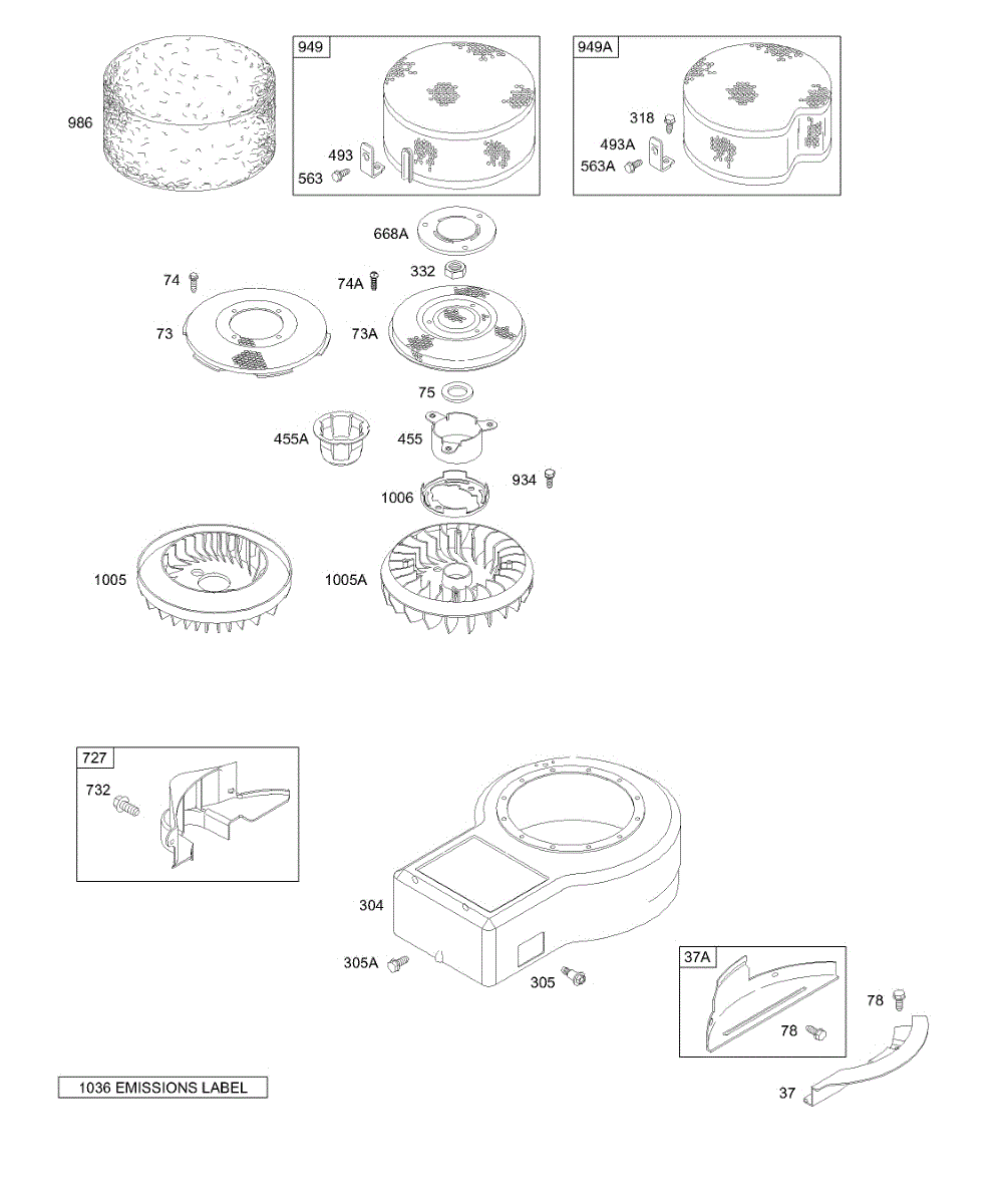 Parts for Briggs & Stratton 283707-0136-01: Blower Housing, Screens Parts
