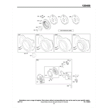 Parts for Briggs & Stratton 120412-0124-E1: Blower Housing / Shroud, Flywheel, Rewind Parts