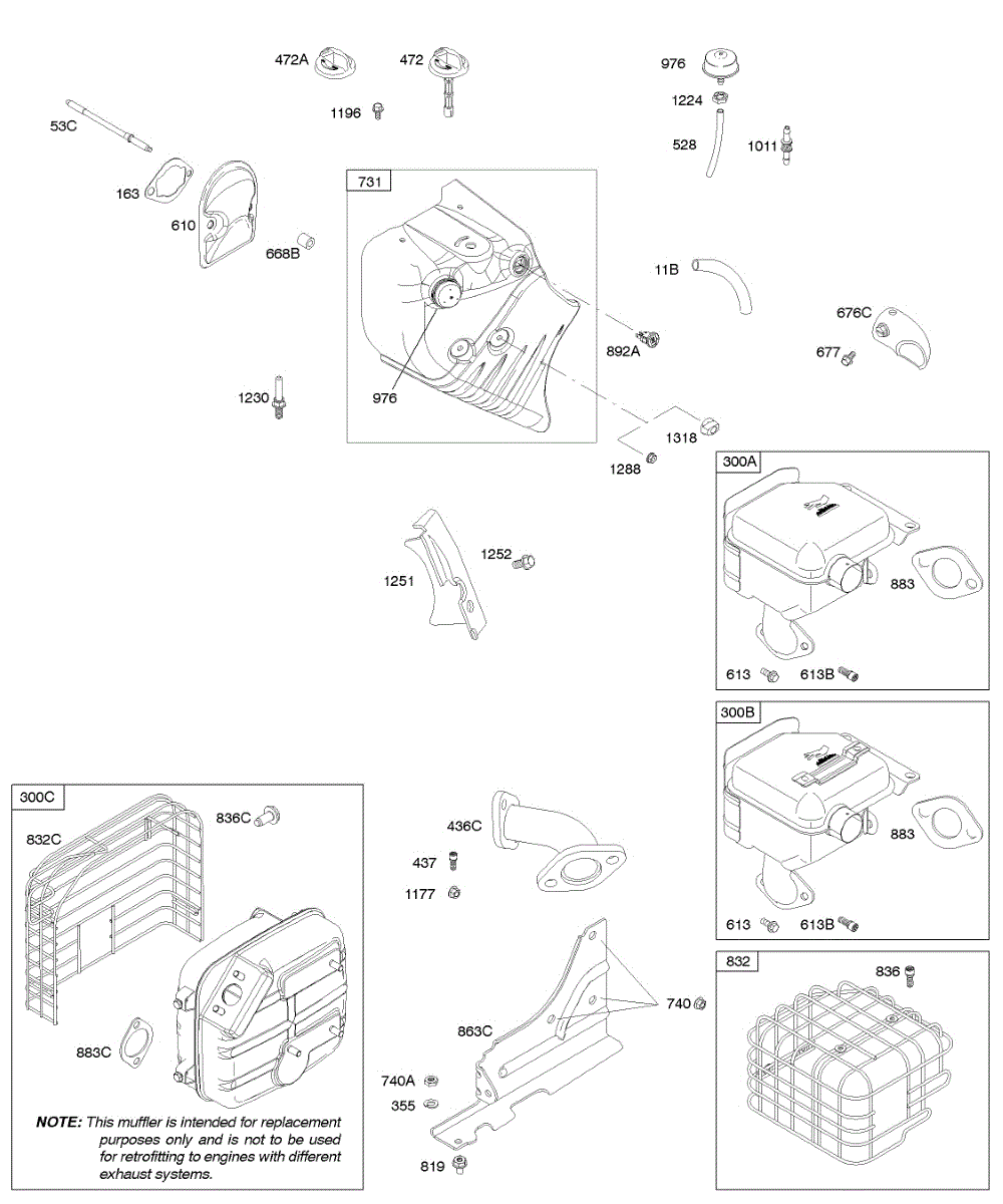Parts for Briggs & Stratton 21B414-0739-E1: Blower Housing / Shrouds, Exhaust System Parts