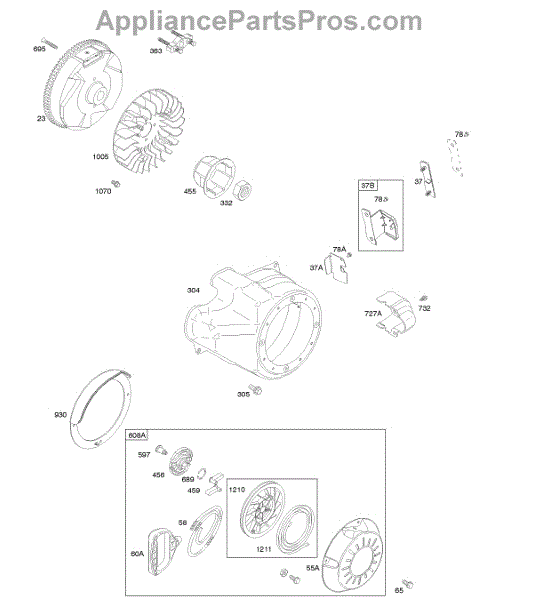 Parts for Briggs & Stratton 20M313-0100-E1: Blower Housing / Shrouds, Flywheel, Rewind Starter Parts