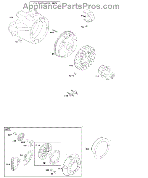 Parts for Briggs & Stratton 20X314-0110-E1: Blower Housing / Shrouds, Flywheel, Rewind Starter Parts