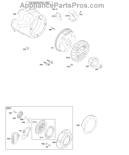 Parts for Briggs & Stratton 21B414-0017-E1: Blower Housing / Shrouds, Flywheel, Rewind Starter Parts