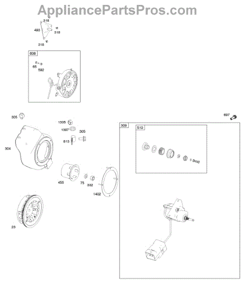 Parts for Briggs & Stratton 084333-0197-E2: Blower Housing / Shrouds, Electric Starter, Flywheel, Rewind Starter Parts