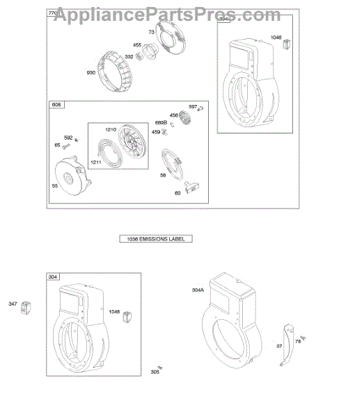 Parts for Briggs & Stratton 091202-1383-E1: Blower Housing / Shrouds, Rewind Starter / Blower Housing Parts