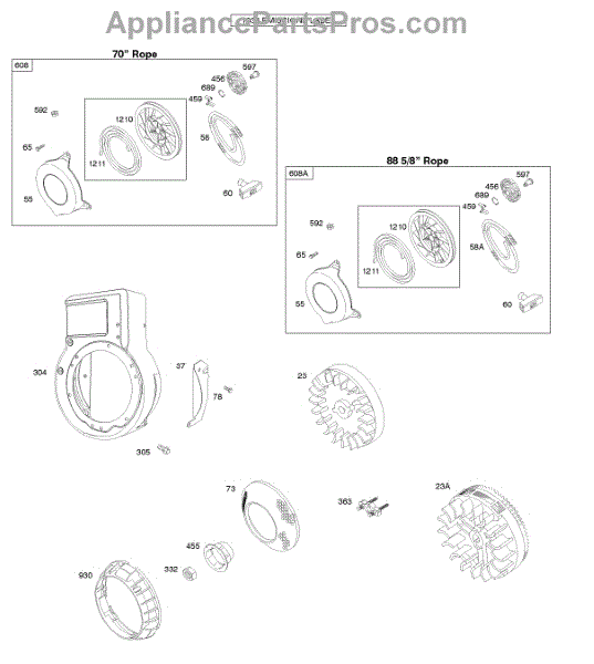 Parts for Briggs & Stratton 093302-1016-B1: Blower Housing / Shrouds, Flywheel, Rewind Starter Parts