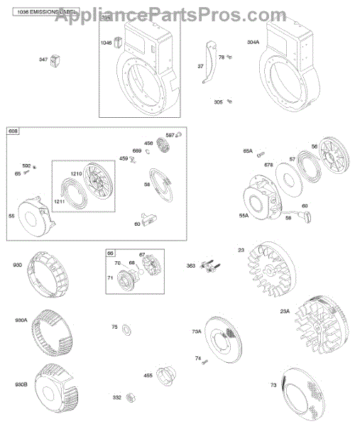 Parts for Briggs & Stratton 093432-1240-E1: Blower Housing / Shrouds, Flywheel, Rewind Starter Parts