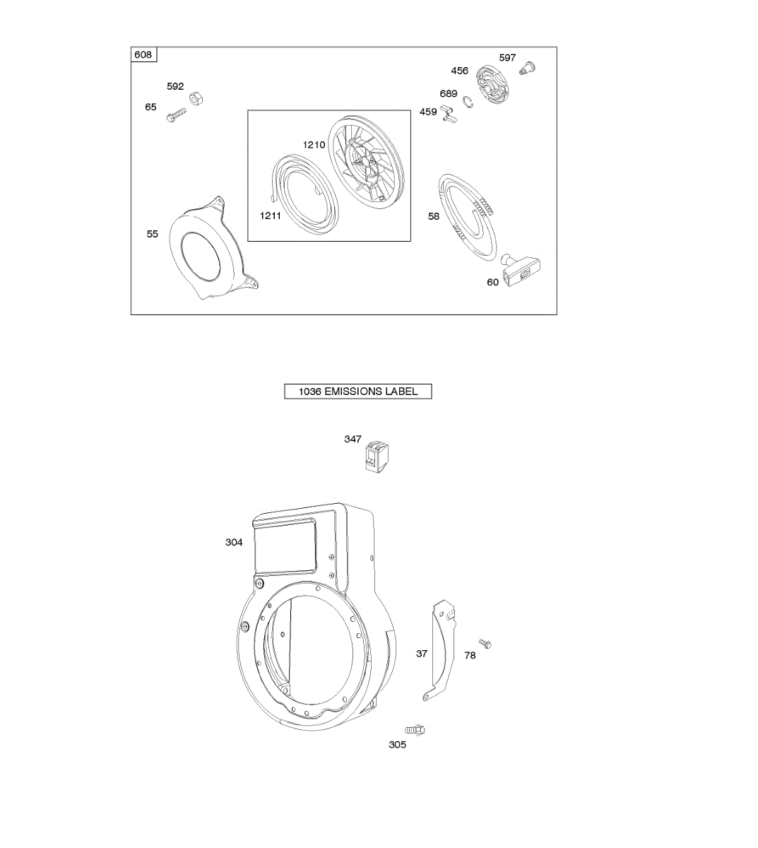 Parts for Briggs & Stratton 095402-0111-E1: Blower Housing / Shrouds, Rewind Starter Parts