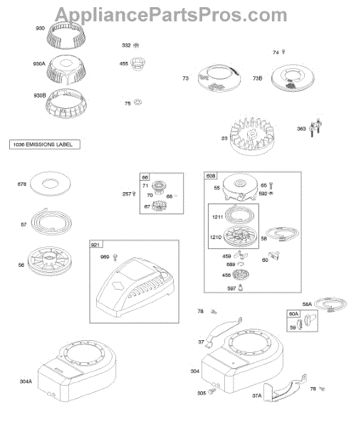 Parts for Briggs & Stratton 098902-0899-99: Blower Housing / Shrouds, Flywheel, Rewind Starter Parts