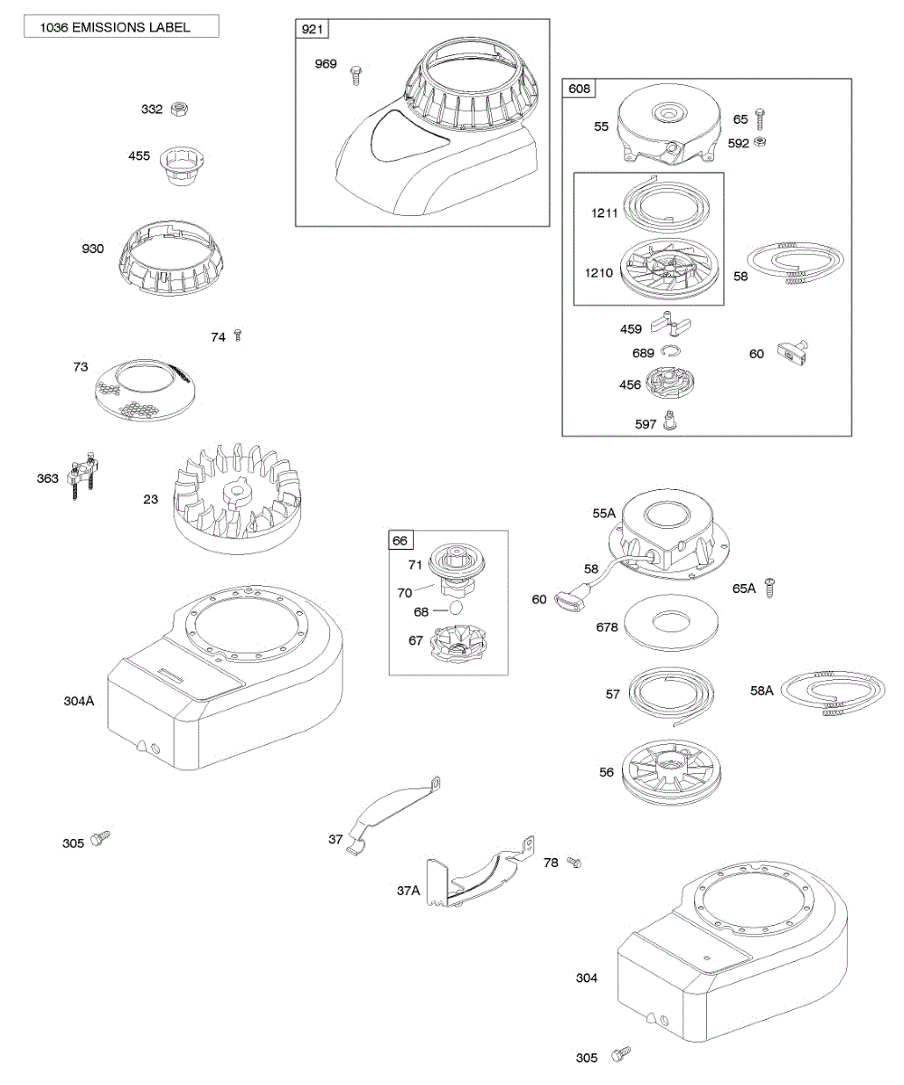 Parts for Briggs & Stratton 09D902-2240-B1: Blower Housing / Shrouds, Flywheel, Rewind Starter Parts