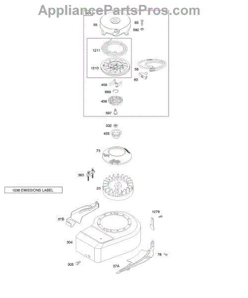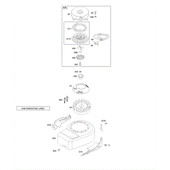 Parts for Briggs & Stratton 09K902-0323-E1: Blower Housing / Shrouds, Flywheel, Rewind Starter Parts