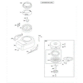 Parts for Briggs & Stratton 09M902-0112-E1: Blower Housing / Shrouds, Flywheel, Rewind Starter Parts