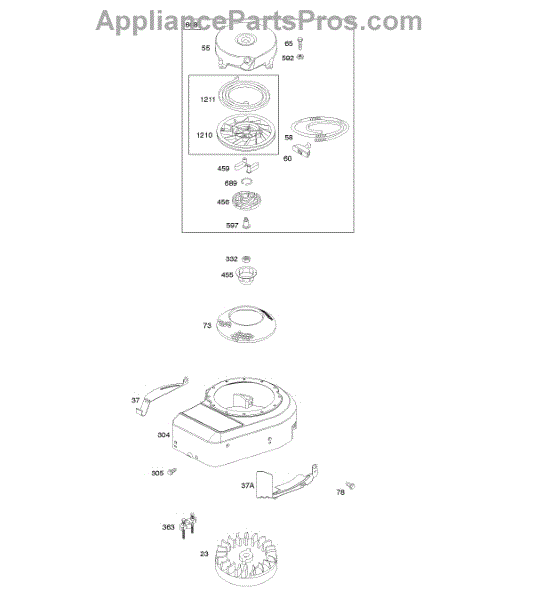 Parts for Briggs & Stratton 09S502-0707-E1: Blower Housing / Shrouds, Flywheel, Rewind Starter Parts