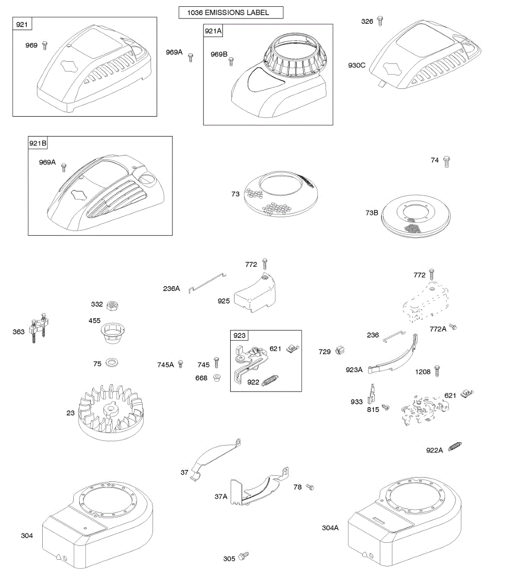 Parts for Briggs & Stratton 10A902-0236-81: Blower Housing / Shrouds, Brake, Flywheel Parts