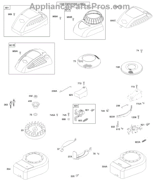 Parts for Briggs & Stratton 10A902-2050-B1: Blower Housing / Shrouds, Brake, Flywheel Parts